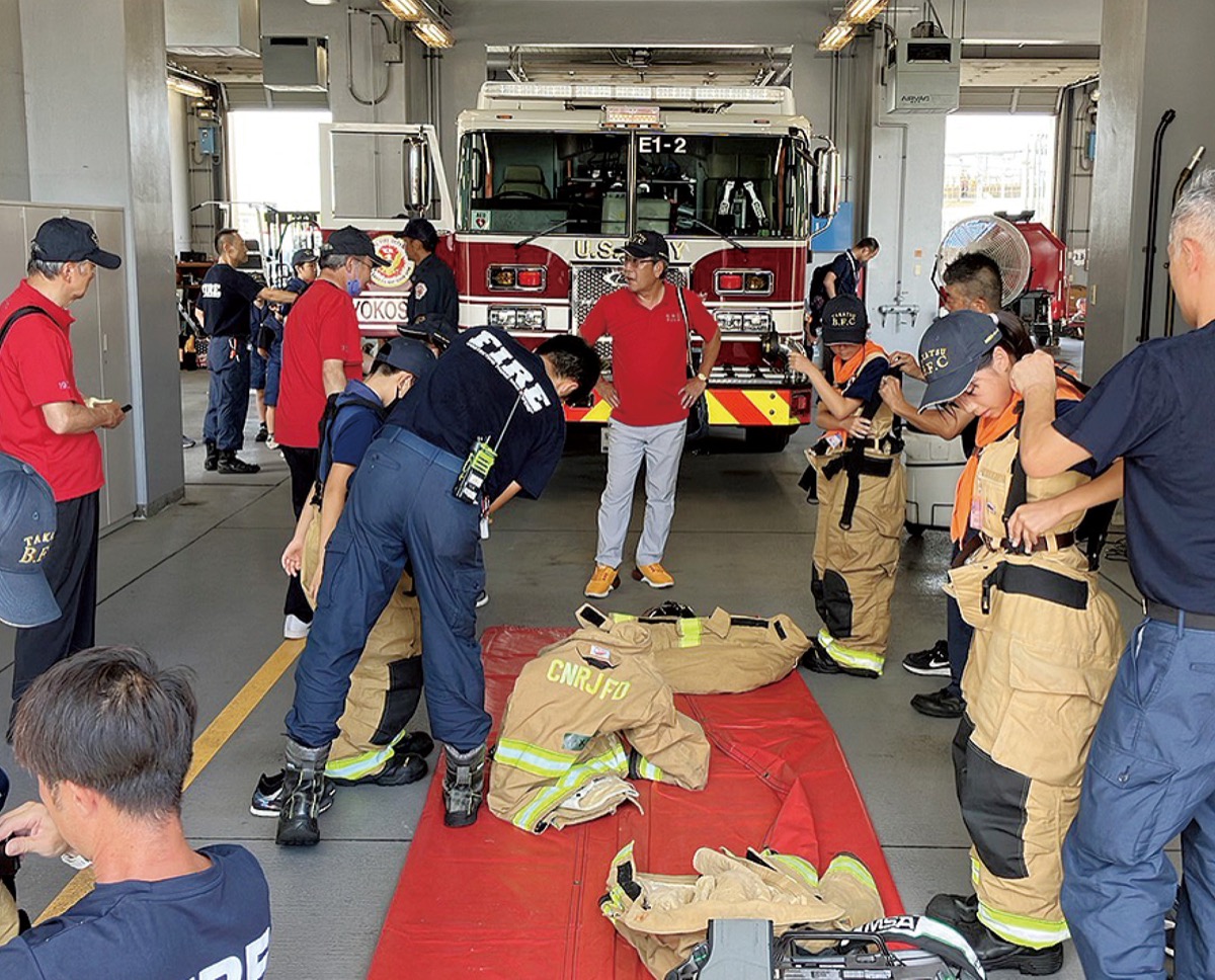 高津消防署少年消防クラブ(藤原忠興運営委員長)が、8月8日に米国海軍横須賀基地の消防隊施設を訪れた。
