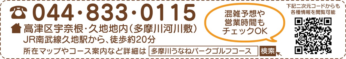 普通のゴルフと同様に18ホールをプレーする「パークゴルフ」。この競技を気軽に楽しめるスポットとして、区内でも屈指の人気を誇る同所は、川崎市が保有する施設のため大人450円、シニア250円という格安なプレー料金も魅力。この秋も賑わいをみせている。また「これから始めてみたい!」といった初心者や、小学生未満のプレーヤーには3ホールのお試しコースが用意されており、こちらの利用は無料(用具レンタル料・別途50円)。スタッフが丁寧にプレー手順などを教えてくれるので、気軽に体験できるのも大きな特長の一つ。平日は無料の隣接駐車場もあるのでアクセスも良好!詳細問合せは下記まで。