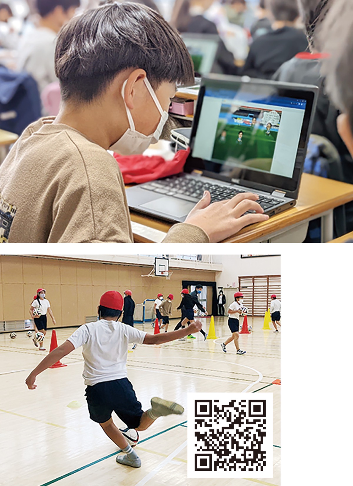 中原区に本社を構える(株)アルファメディア(小湊宏之代表)と川崎フロンターレが協働で行っている「スクラッチサッカー」。プログラミングされたゲームでシュートやドリブルのイメージをつかんだ後、実際にボールを蹴ってサッカーを身近に感じてもらうことを目指す。サッカーが苦手な子にも頭と体を使って楽しさや魅力を感じてもらおうという試み。