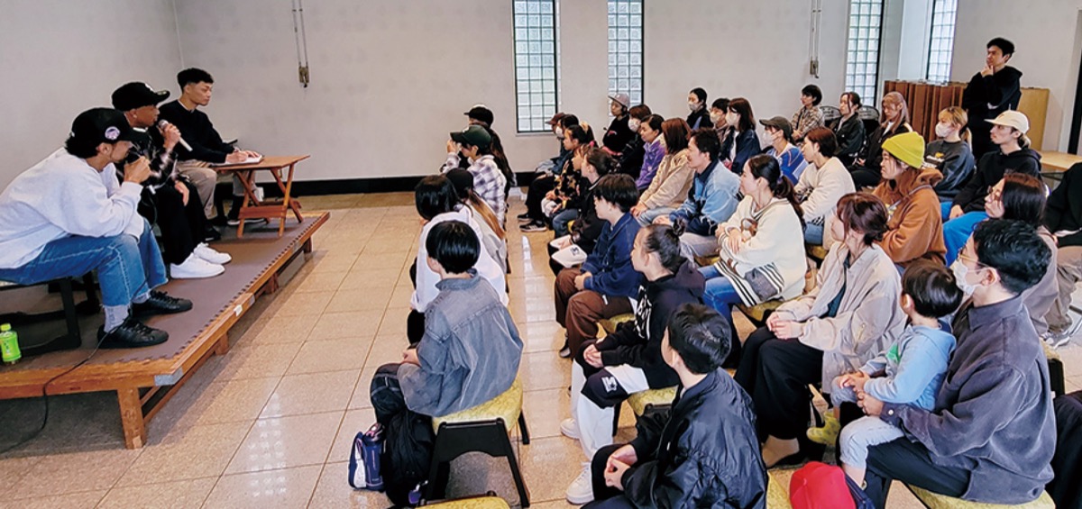 地元で不動産業などを営む有志団体「チームM+(プラス)」が大蓮寺(久本)を会場にトークショーを開催した。「ダンサーという職業」に関する見識を深めてもらおうと企画したもので、親子連れなど多くの区民が参加した。