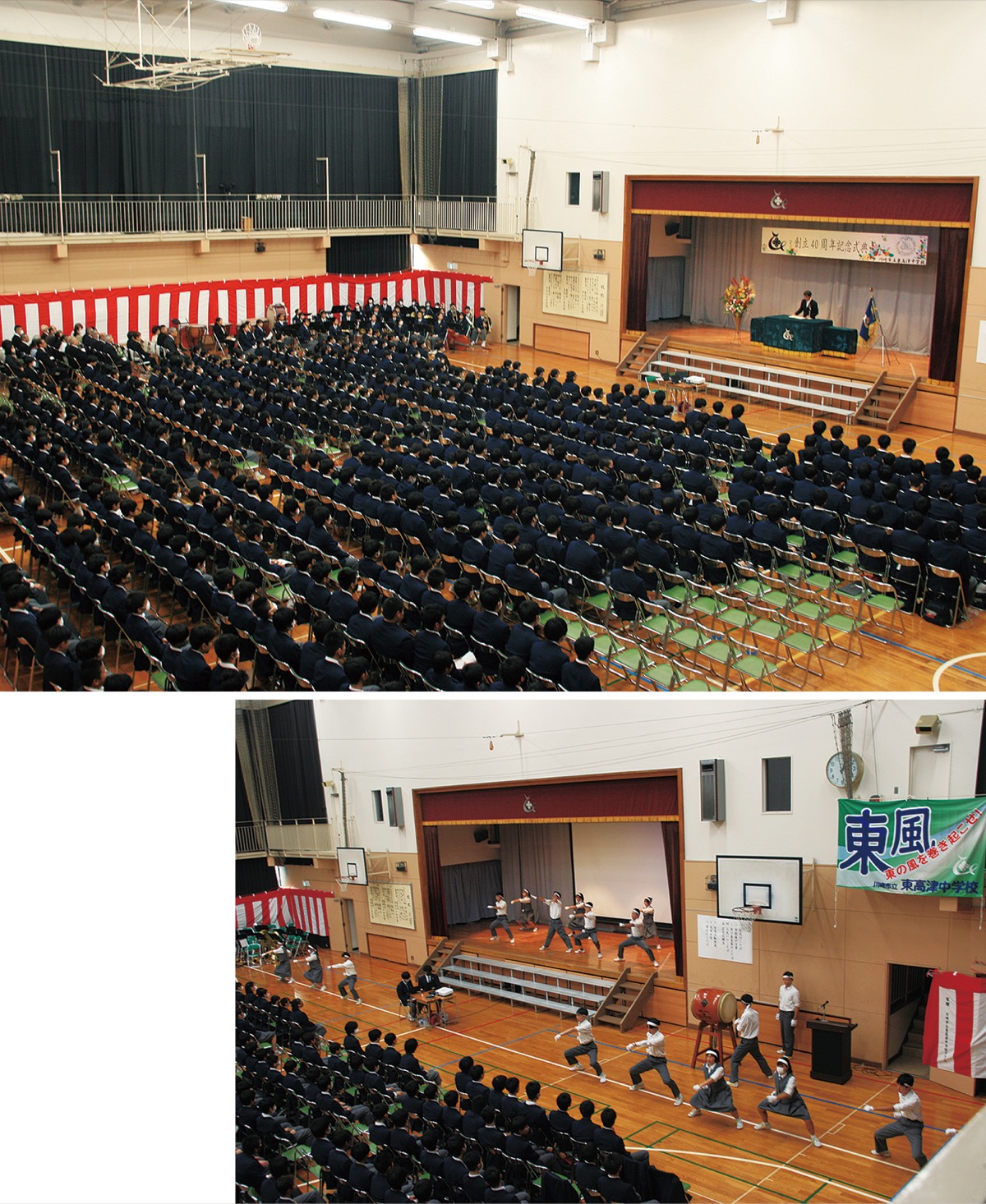 その後の生徒発表では「東高津の魅力を未来につなげていくために」という題目の下、グループごとに分かれて様々な視点から学校の特長などを説明。映像やステージパフォーマンスを交え、これまでの取り組みを振り返りつつ、今後の将来像について皆で想いを共有。最後は生徒全員で「ふるさと」と校歌を合唱し、盛況のうちに閉幕となった。