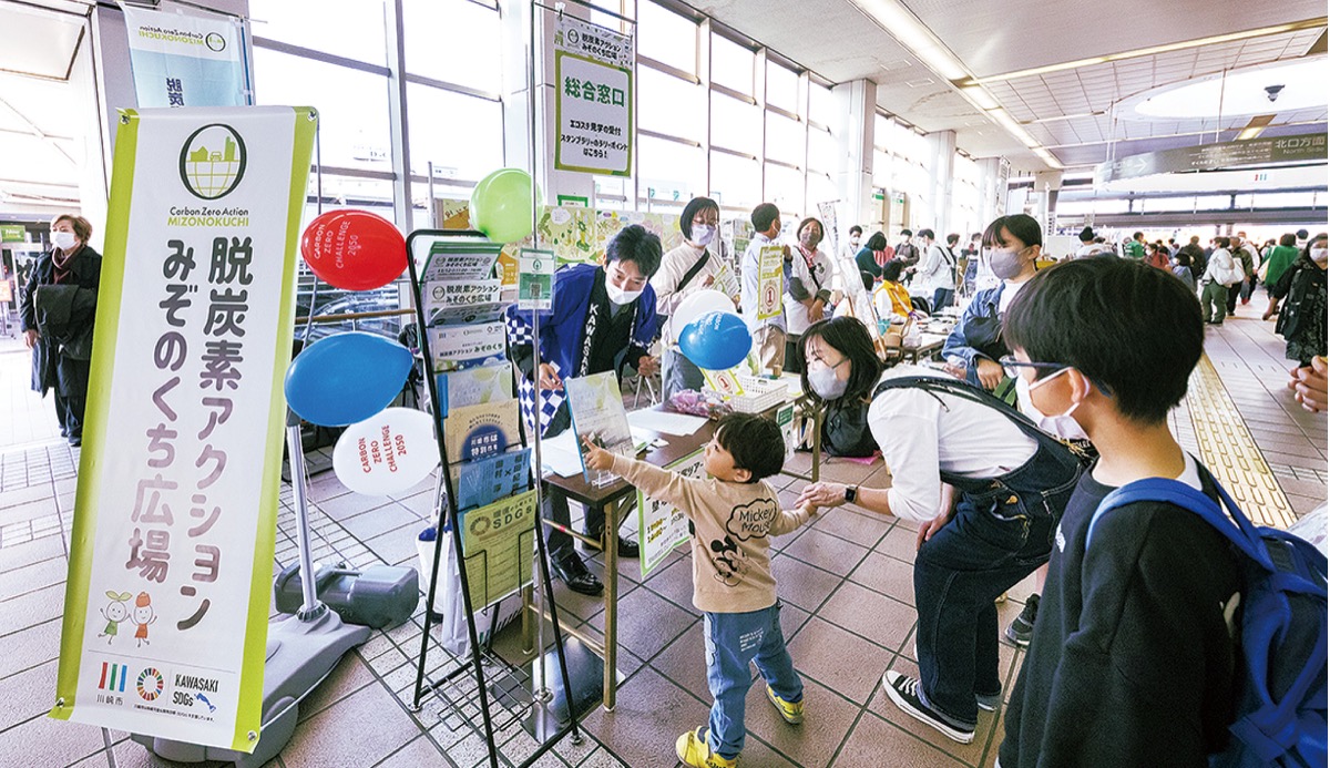 川崎市が進める脱炭素戦略モデル地区となっている溝口エリア。市は、2020年に「脱炭素アクションみぞのくち」という団体を創設し、参画する市内の48の企業や団体と連携。環境を良くしていこうと様々なイベントを行っている。