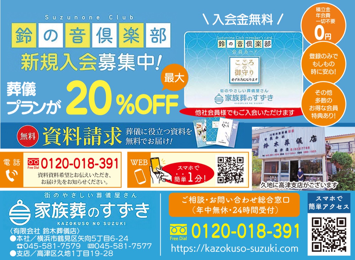 創業90年余りの歴史を誇る「鈴木葬儀店」がブランド名を「家族葬のすずき」に刷新し「地元密着」の方針はそのままに「葬儀は身内の葬儀をあげるつもりで、その家庭の事情等にも細かく気を配り、丁重に丁寧に心を込めて」をモットーに掲げる同社では、事前手配の重要性を説く。