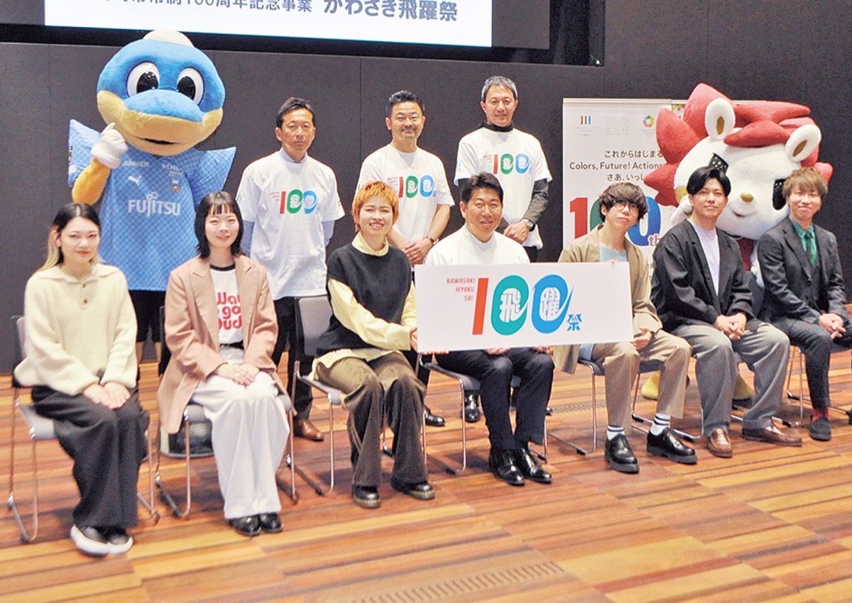 7月1日に市制100周年を迎える川崎市は、祝賀イベント「かわさき飛躍祭」を6月29日(土)に開催すると、先月20日に報道陣に発表した。川崎市出身バンド、SHISHAMOとsumikaによる等々力球場での音楽フェス、川崎フロンターレ記念試合、スポーツや食の魅力を集め、節目を盛り上げる。