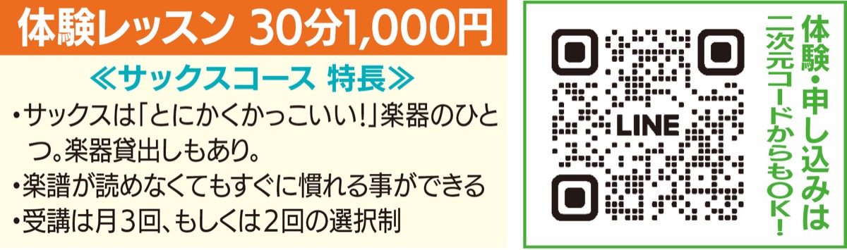 月、火、水曜開講「サックス教室」、レッスン生を募集中