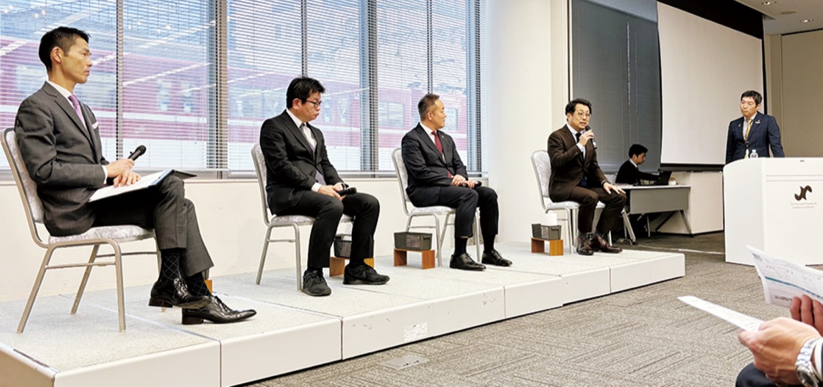 川崎商工会議所サービス業部会かわさき観光研究会(阿部勝部会長)は3月27日、同商議所KCCIホール(川崎区駅前本町)で「川崎の魅力再発見」と題したパネルディスカッションを行った。サッカーJ1・川崎フロンターレの吉田明宏社長、男子プロバスケットボールBリーグ・DeNA川崎ブレイブサンダースの元沢伸夫会長ら4人がパネリストとして登壇し、意見を交わした。川崎の魅力スポットについて、プロ野球・横浜DeNAベイスターズの本拠地・横浜スタジアムの藤井謙宗社長は、生田緑地を挙げ「広大な森の中に(川崎市 藤子・F・不二雄ミュージアムや川崎市岡本太郎美術館といった)海外の人が興味を持ってもらえるような素晴らしい場所がある。その割には(知られておらず)もったいない」と述べた。一方、元沢会長は「川崎駅前はソフトコンテンツを中心にアジアの方を呼べるポテンシャルを秘めている。仕掛けをどれだけできるかが重要」と語った。