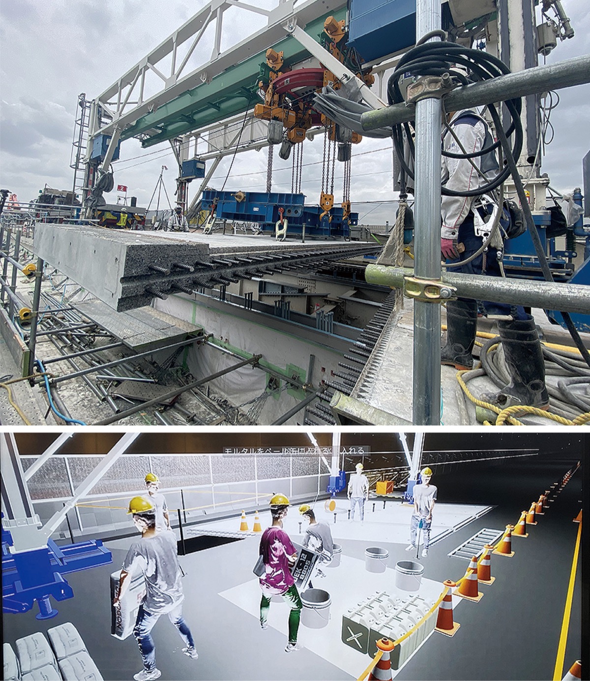 また、建設業界全体で作業員の高齢化や働き手不足が深刻化していることから、3DCGによる「施工シミュレーター」を導入。トヨタ自動車の未来創生センターと大林組が共同で建設工事における生産性向上を目的に開発したシステムで、大規模工事の現場での実用化は初めてという。NEXCO中日本東京支社の現場責任者は「作業前にCGのバーチャル画面で細部まで確認できるため、事故防止や時短につながっている」と手ごたえを語っていた。