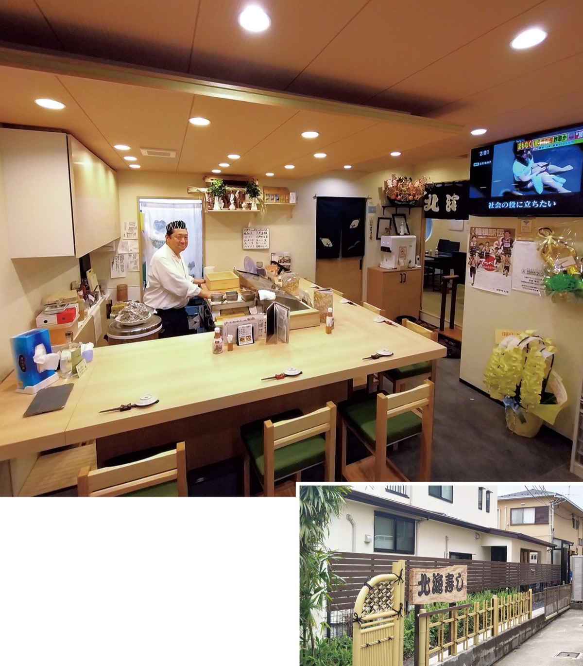 建物老朽化等により旧店舗での営業を終了した二子新地の「北海寿し」(後藤治店主)の移転がこの程、完了した。