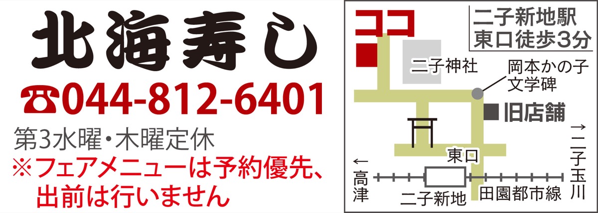 「北海寿し」は1995年2月、二子新地に開店。店名の通り、北海道産を中心とした新鮮な食材を店主が握る寿司の美味しさが評判を集め、瞬く間に二子新地の名店に成長した。旧店舗での営業終了に伴い一時は廃業も考えたが、周囲からの惜しむ声に「自分には『寿司道』しかない」と事業継続を決意。30年目の節目に移転し新たな一歩を踏み出した後藤さんは「これからも地域に根差したスタンスを変えずに頑張って行きたい」などと話している。