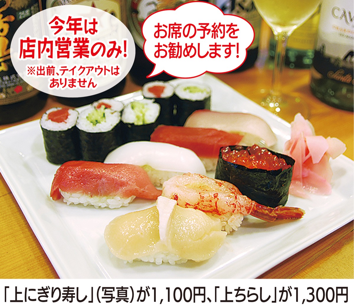 再オープンを記念して、例年行っている「創業祭」を5月3日(金・祝)から6日(月・祝)までの4日間開催する。期間中は通常1870円の上寿司を1100円、上ちらしを1300円(共に税込)の感謝価格にて提供。富山産の白エビ天ぷら(1100円)などサイドメニューも用意するほか、瓶ビール(通常650円)も特別価格(450円)に。