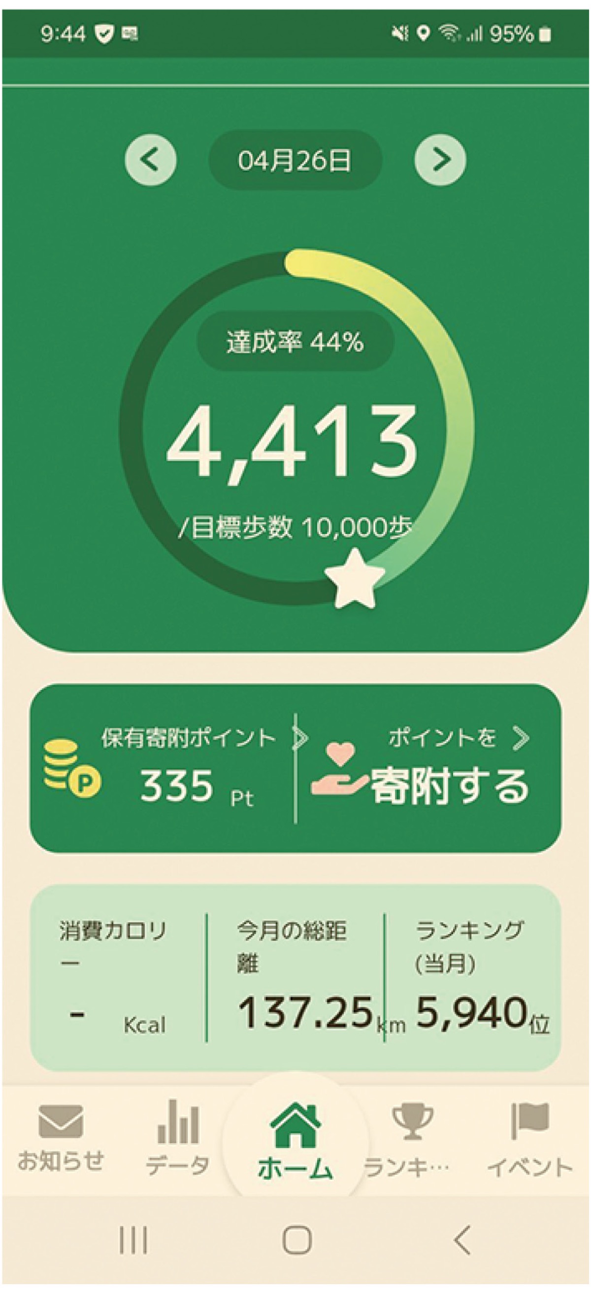 アプリは、歩数に応じて付与されたポイントを現金に換算し、市内の小学校や支援学校に「応援金」として寄付し学校生活を支援することが目的。市は登録者数目標を、3年間で市民の1%にあたる1万5000人と掲げたが、開始からわずか半年余りで3倍超の4万7000人に上った。区別では中原区の8045人が最も多く、市外でも3456人が利用。子育て世代を中心に広がりを見せている。