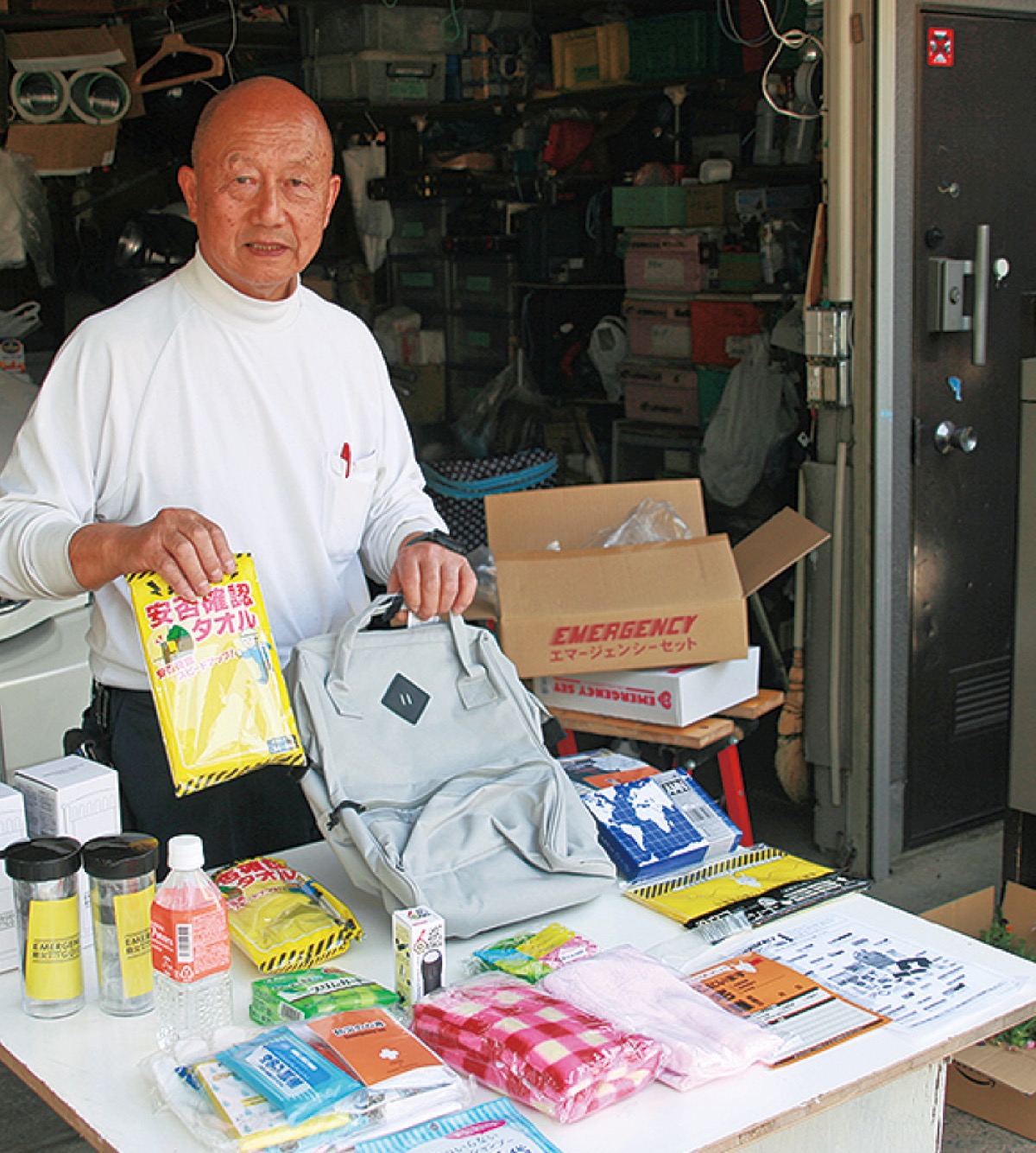 リュックの実物は現在、同会役員宅のガレージに格納されており、近隣住民らの希望に応じ随時、セット内容などを紹介。地域に普及させていきたい考えだ。