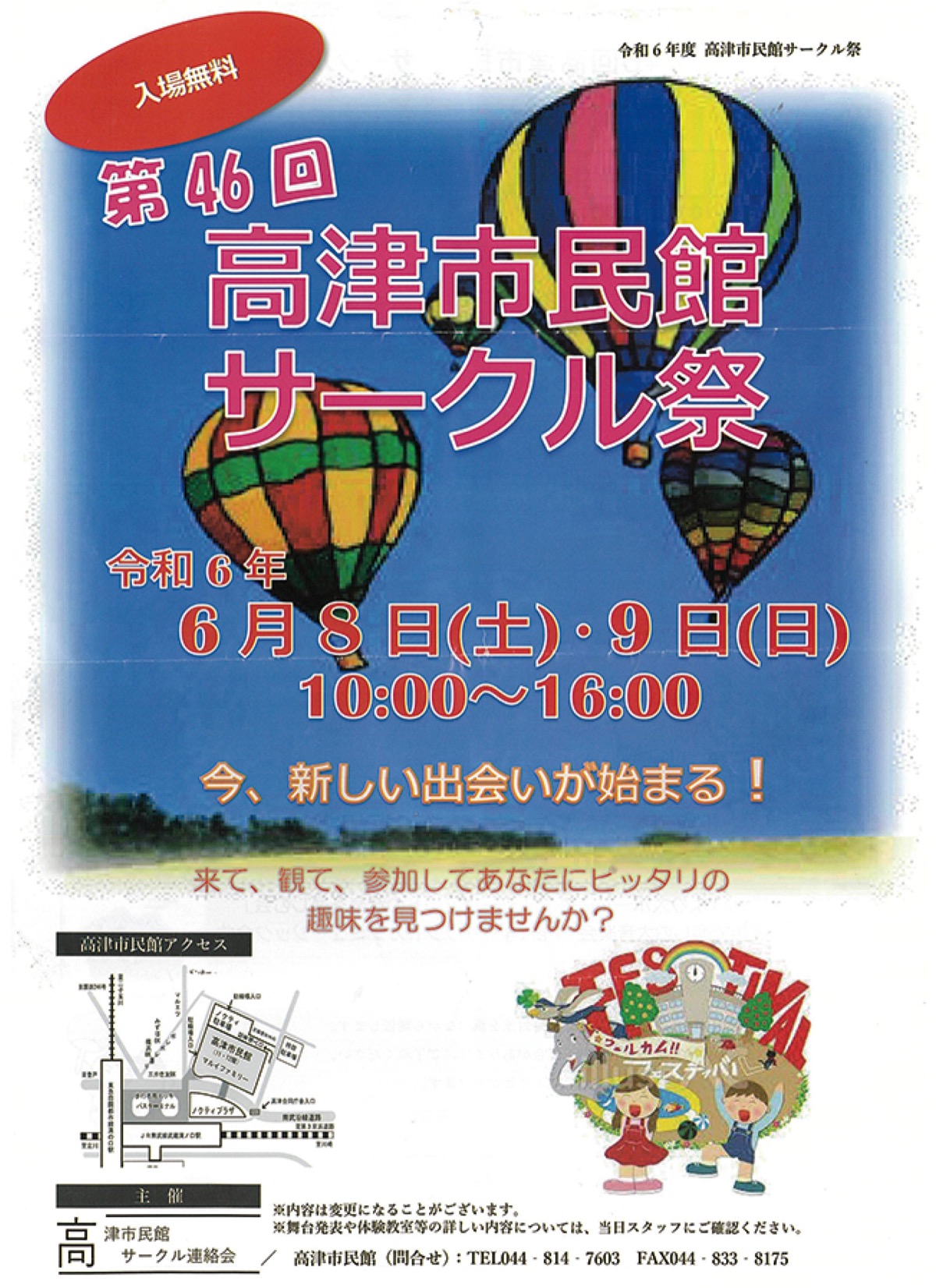 プログラム内容は変更になる可能性あり。また各サークルの出演時間などについては高津市民館(【電話】044・814・7603)のスタッフに確認することができる。
