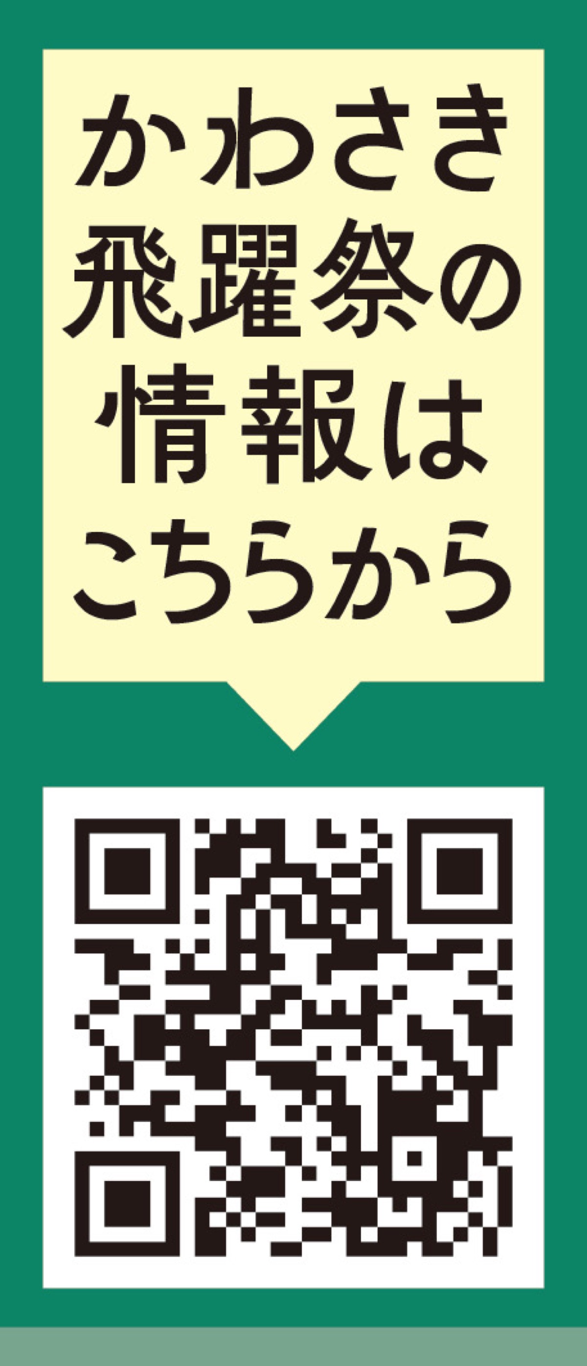 かわさき飛躍祭はこのほか、航空自衛隊のブルーインパルスの飛行、SHISHAMO、sumikaらアーティストによる音楽ライブやサッカーJ1・川崎フロンターレの市制記念試合も行われる。詳細は二次元コード参照。
