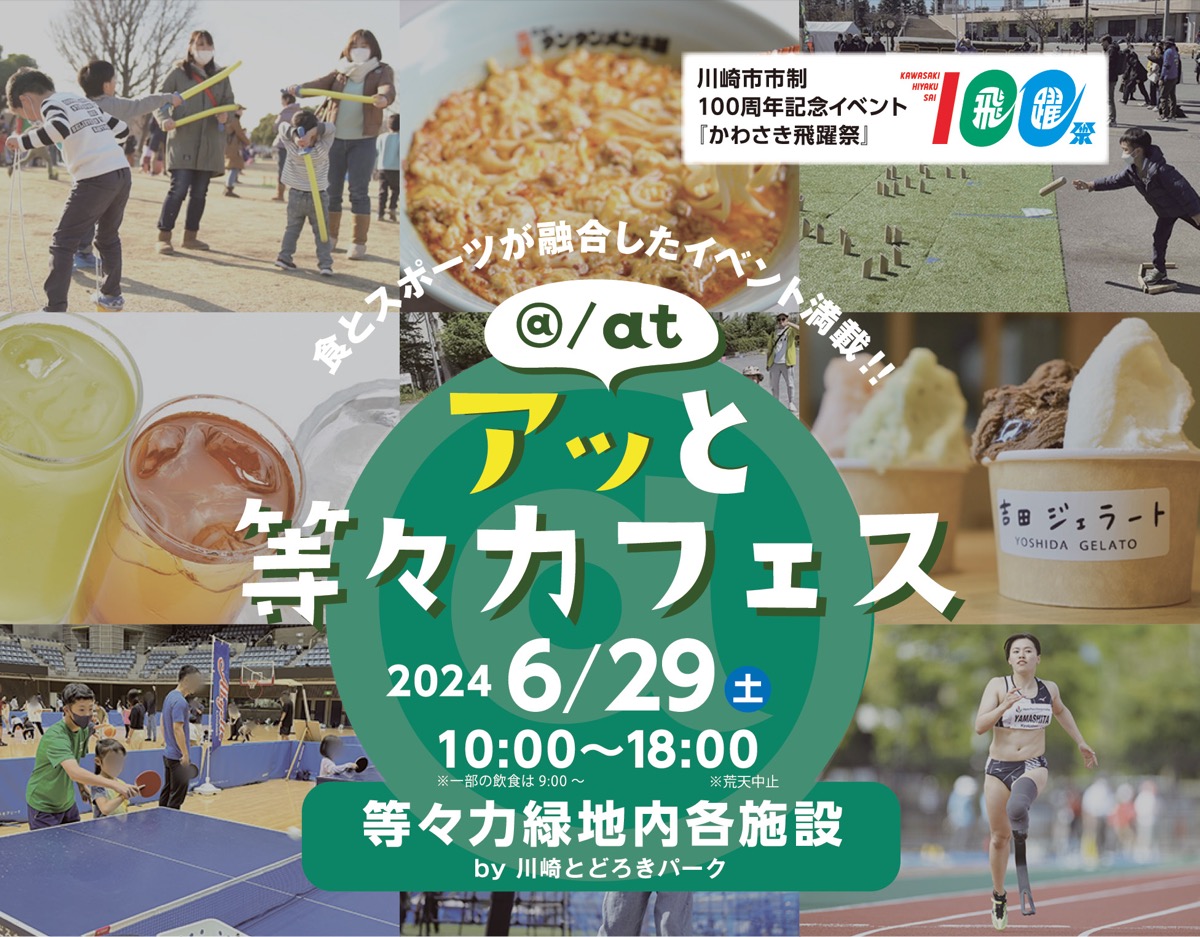 川崎市市制100周年を記念した6月29日(土)開催の「かわさき飛躍(ひやく・100)祭」(等々力緑地一帯)の中で「アッと等々力フェス」は、楽しさいっぱいのイベントだ。
