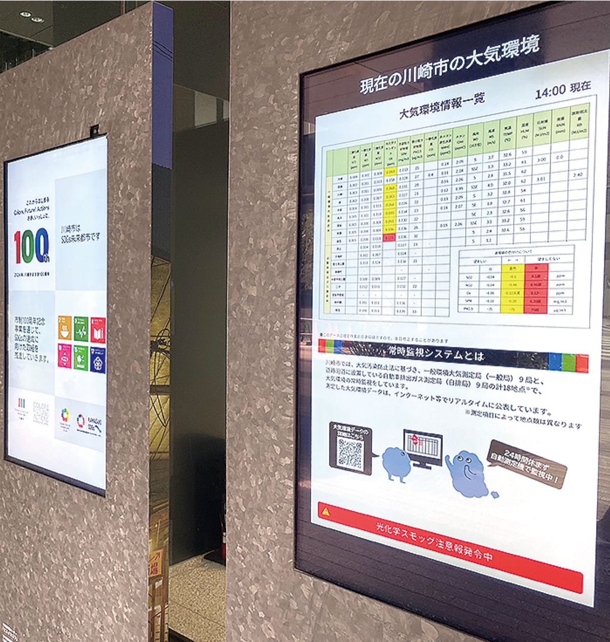 今年は市内で最初に発令されたのが6月26日で、7月に入り4日〜6日と3日連続、そして18日、22日と続いた。市は、気象条件などから「今日は発令に至る」と予測される場合には市内の事業者に対して工場などの排気内のNOxを調整するよう依頼するなど、対策を講じている。
