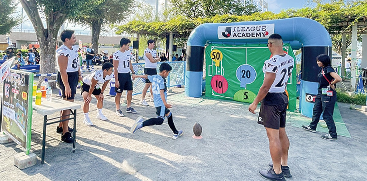 「赤」いユニフォームを着た富士通フロンティアーズの選手らとさまざまな対決をする「アメフトーーク」も同時開催。アメフトキックターゲットやXリーグQBバトルなどで屈強な選手たちに戦いを挑もう。
