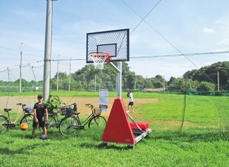 暑い日が続いています。7月下旬からは連日のように熱中症警戒アラートが発令される日々です。暑さは草の生育には好条件のようで、春日台の広場は草刈りが追いつかない状況です。その広場に7月22日にバスケットボールのゴールポストが設置されました。この設置は川崎市建設緑政局みどりの事業調整課がゴールポストの利用状況をモニターする「実証実験」の為です。