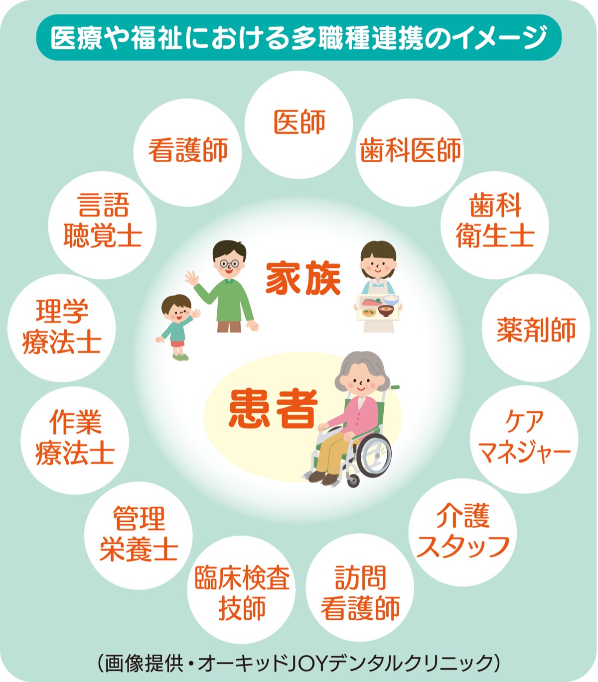 医療や福祉の場において、患者や利用者に日々携わる専門家らがタッグを組み、患者一人ひとりを包括的にケアする「多職種連携」。様々な職種が連携し、それぞれの専門性を発揮しながら職務にあたることで、よりスムーズで質の高いサービスを提供しようというこの取り組みが、高津区内でも始まりつつある。