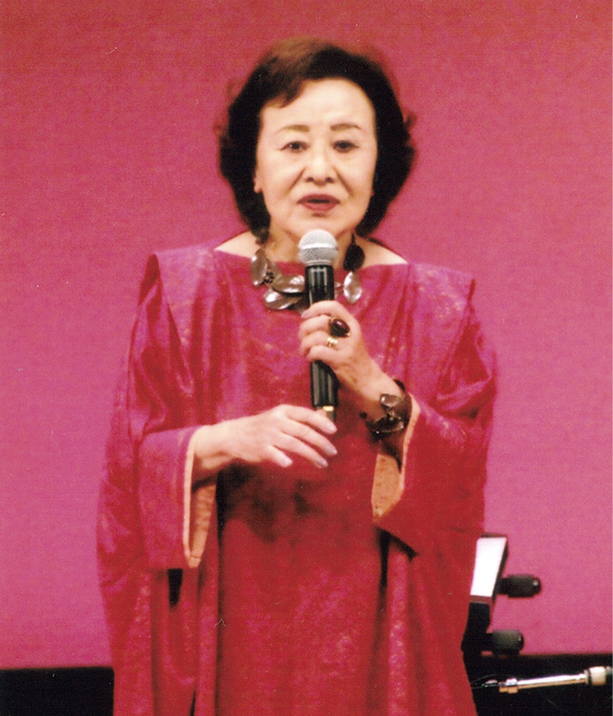 高津区在住のシャンソン歌手、紫村千惠子さん主宰の演奏会で、紫村さんと教え子らが歌声を披露。「詩人の魂」「ふるさとの山」「雨のタンゴ」「ひまわり」など、全28曲を歌う。