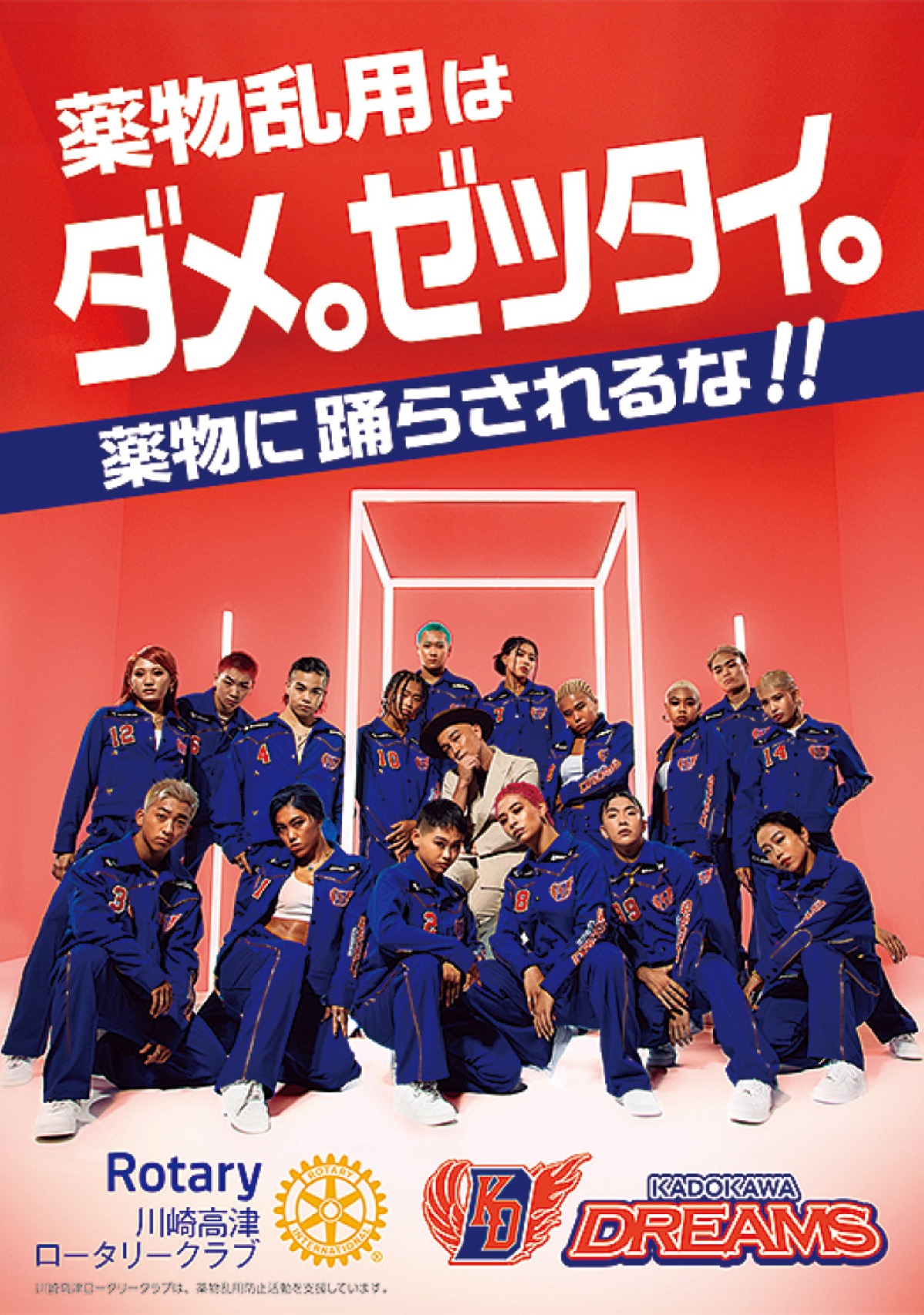 また今回のプロジェクトでは、地元に拠点を置き、若年層に人気を博しているダンスプロリーグチーム「KADOKAWA DREAMS」を啓発キャラクターに迎え、クリアファイルやポスターのデザインなどに登用。さらに9月21日(土)に溝口駅界隈で行われる同クラブ主催の献血活動の会場内においてダンスチームのメンバーと、このセレモニーに参加した高津中学校の生徒らが薬物乱用防止の街頭キャンペーンを実施する予定となっている。小山会長は「若い世代の方々に、薬物についてより一層、考えてもらうことで家庭や学校、地域社会において『薬物乱用を許さない環境づくり』が期待できるのでは」と話し、街頭キャンペーンへの参加を広く呼び掛けている。