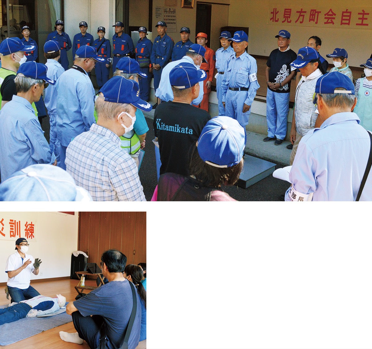 「要援護者5名、全員の無事を確認しております」。9月14日、北見方公民館広場で行われた北見方町会の防災訓練。民生委員児童委員が町内の一人暮らしの高齢者宅を安否確認で回り、担当ごとに報告した。地震を想定した同訓練では、町会内のその他被害情報の収集・報告も実施。住民ら114人が参加した。