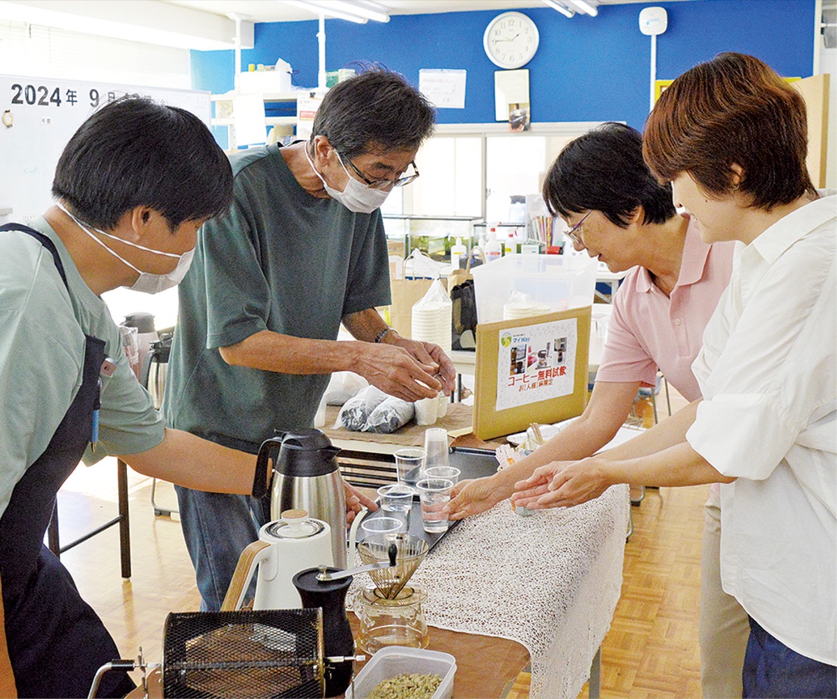この日は、翌日14日に市内で行われる認知症の啓発イベントで「オレンジCafé」として自家焙煎コーヒーを提供するため、利用者たちが準備にあたっていた。