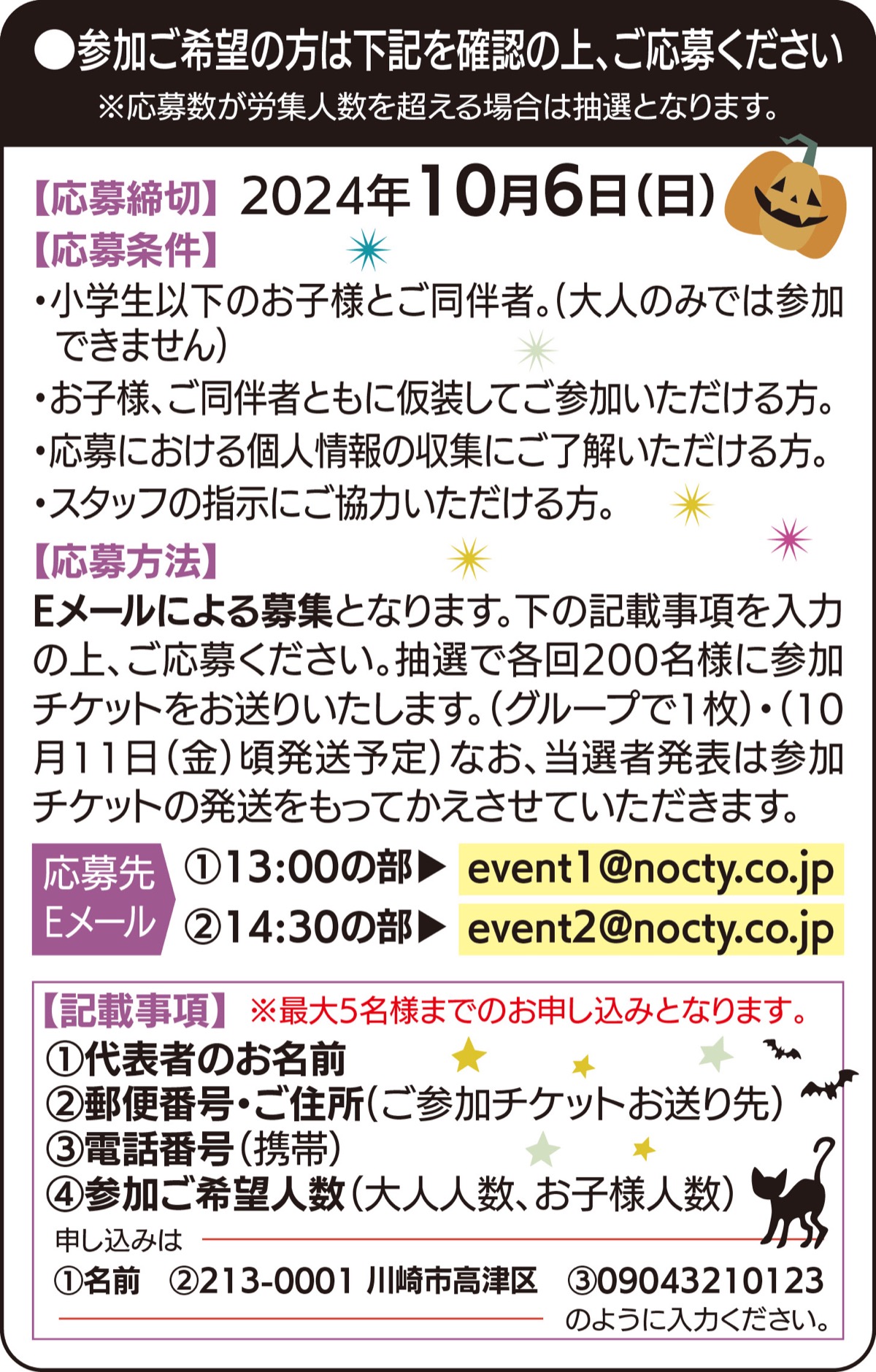 希望者は左記メールアドレスに必要事項を記載の上、応募する。締切は10月6日(日)。参加者にはチケットが送付される。