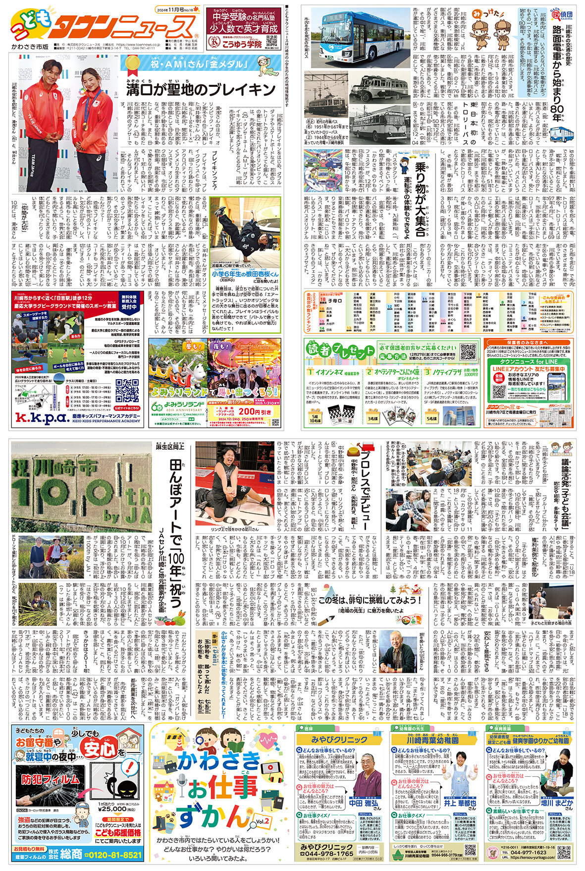川崎市内の公立・私立小学校に配布される「こどもタウンニュースかわさき市版」2024年11月号を発行しました。