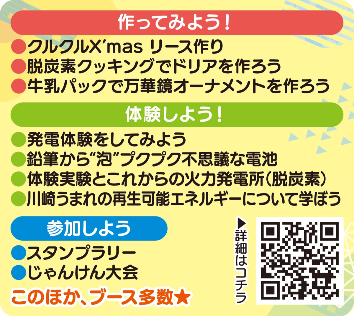 12年目を迎える今年も工作をメインに、クイズやゲーム、スタンプラリーなど盛り沢山。スタンプラリーとじゃんけん大会は景品もある(景品がなくなり次第終了、じゃんけん大会は当日に参加整理券を配布・先着70人)。