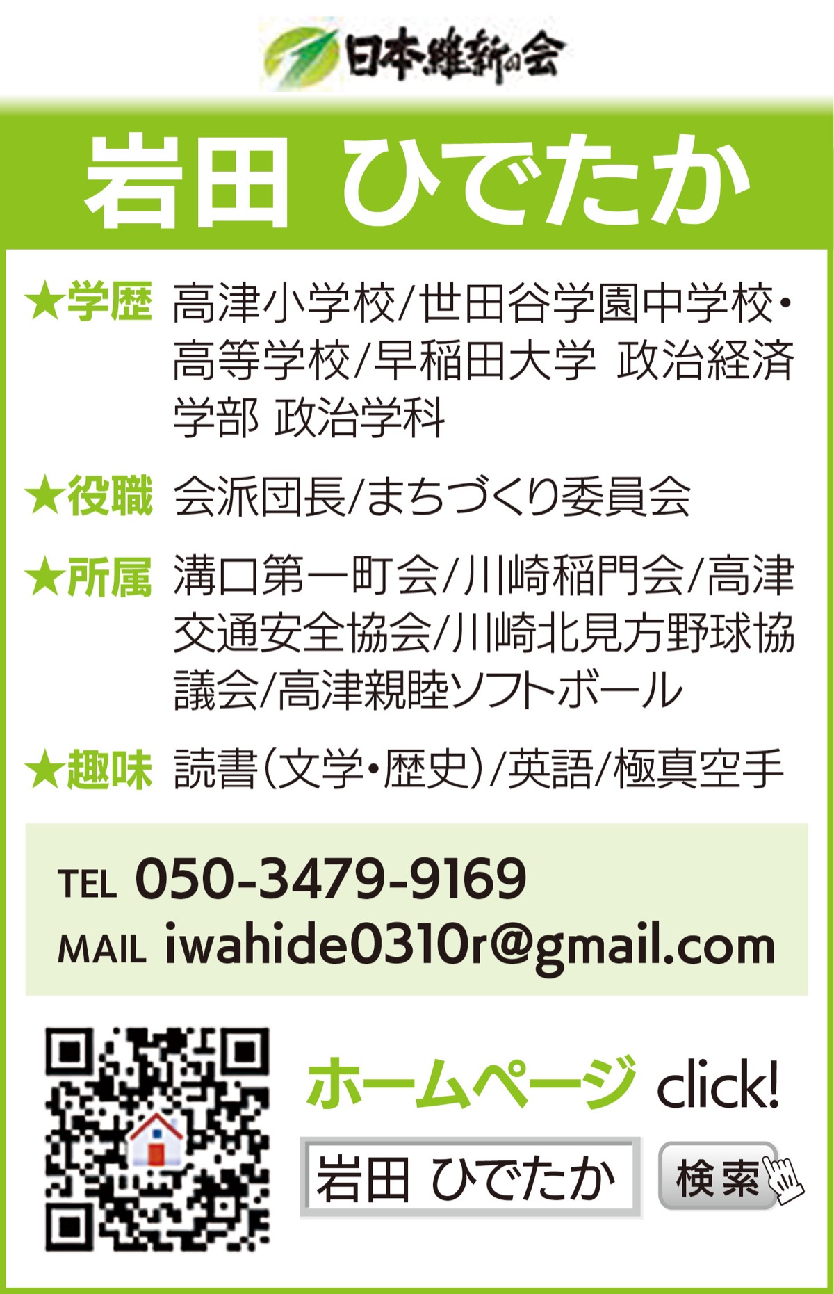 あしたの川崎・日本維新の会 川崎市議会議員 会派団長 岩田ひでたか