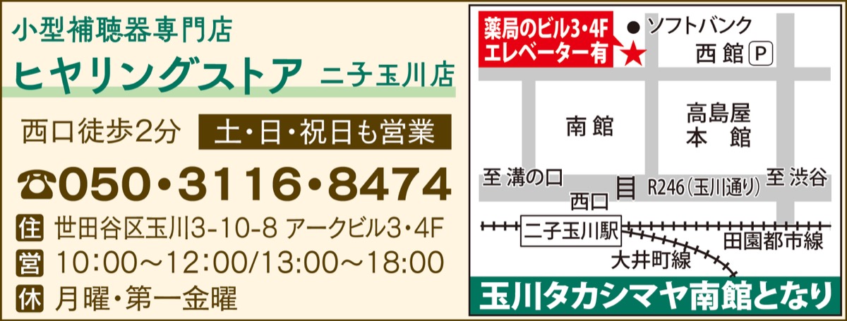 世界6大メーカーを取り扱う小型補聴器専門店「ヒヤリングストア二子玉川店」(二子玉川駅西口徒歩2分)は「聞こえ」の不安を解消し、毎日を楽しく過ごすための各種提案や個々の相談にも丁寧に応じてくれる。