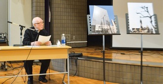 川崎市平和館で3月8日、「戦後80年 川崎大空襲記録展 戦時下の市民生活と川崎大空襲」と題した企画展が始まり、戦争経験者の小川一夫さんが講演した。