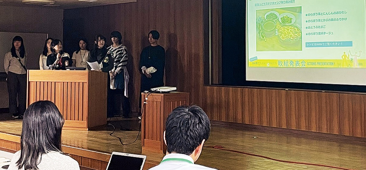当日は、地域で活動する事業者が脱炭素の取り組みを紹介したほか、市内の高校生や新社会人で構成される「まるっとサステナCAMP」の2期生が、1年間の活動を通して学んだ内容や体験の様子を報告した。