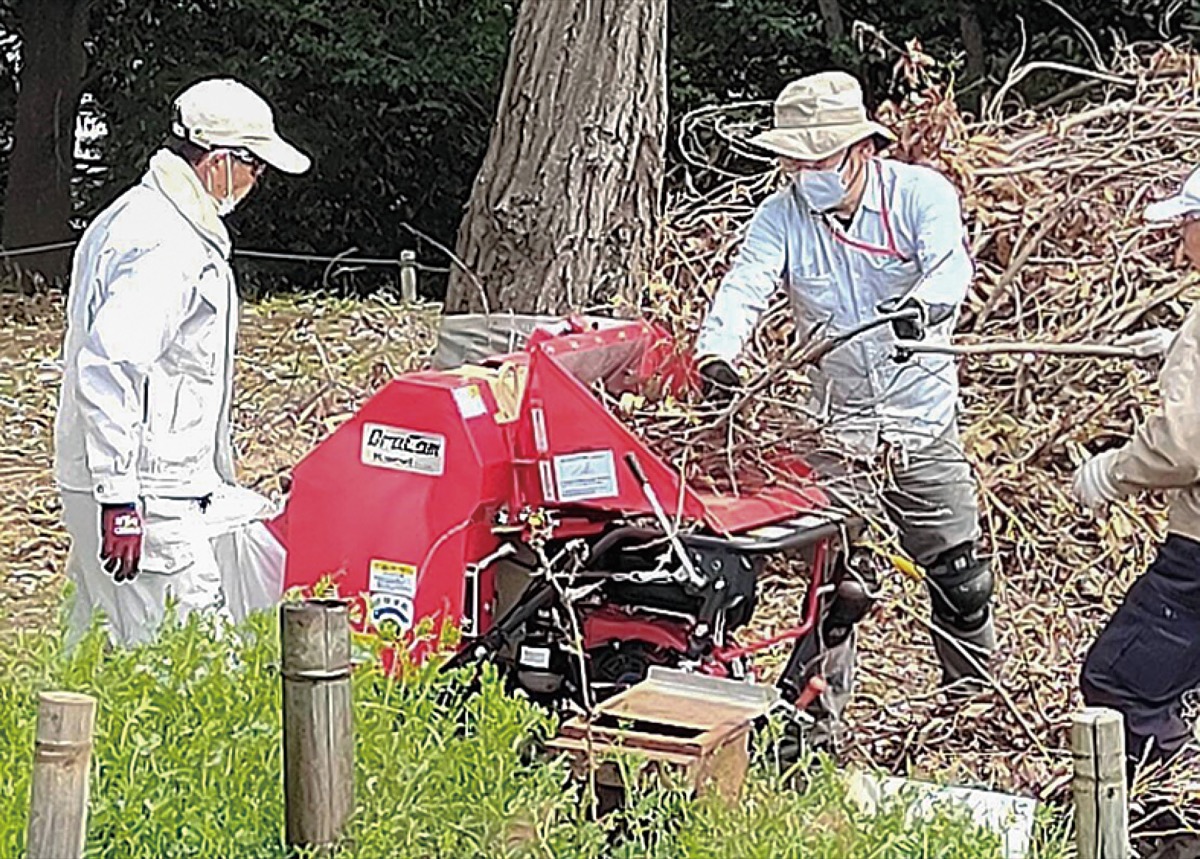 不要材でチップを生産、遊歩道へ散布で有効活用