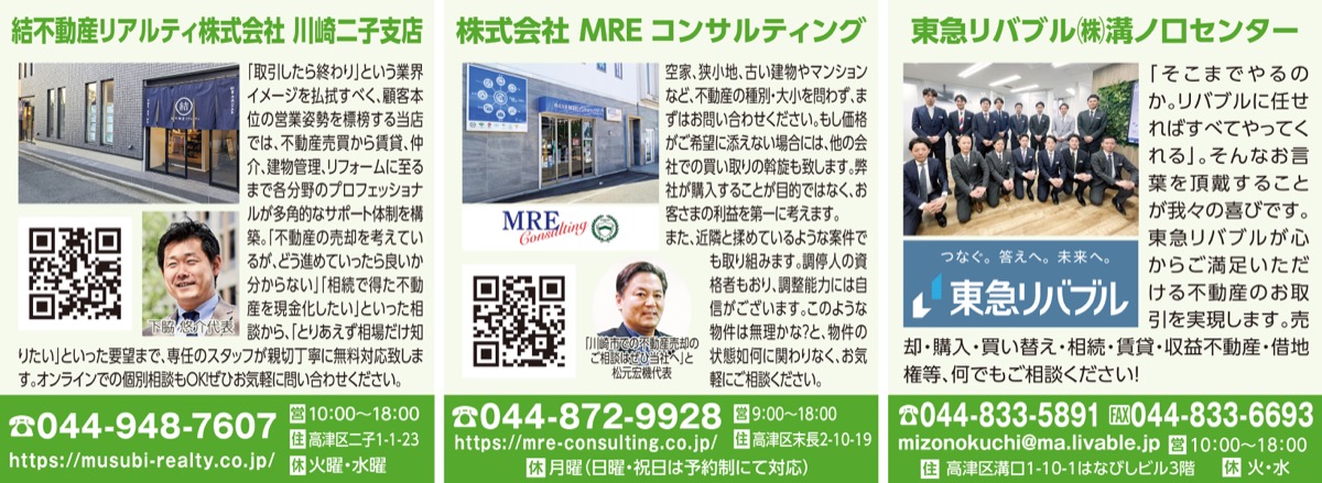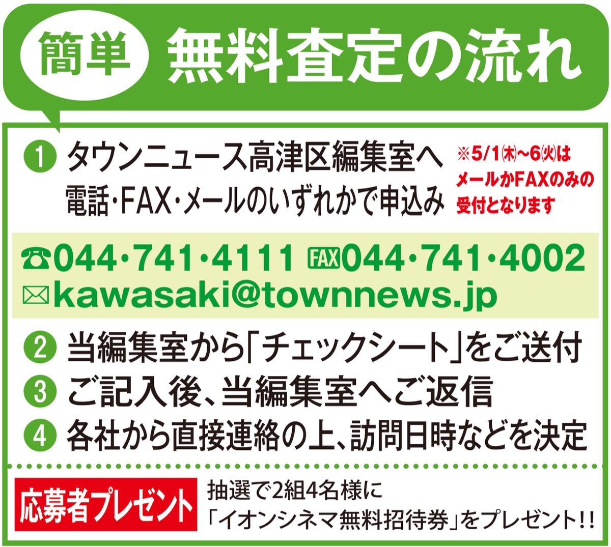 将来に備え、自宅の価値や評価は家族と共有しておきたいもの。本紙では春の特別企画として、不動産企業3社(東急リバブル、MREコンサルティング、結不動産リアルティ)と協力し、不動産を無料査定。本紙が取り次ぎ複数社一括で依頼することで、自宅の資産価値を比較でき、各社の視点を踏まえ今後の住まいや不動産全般の相談も可。まずは当編集室へお問合せを!(左記)