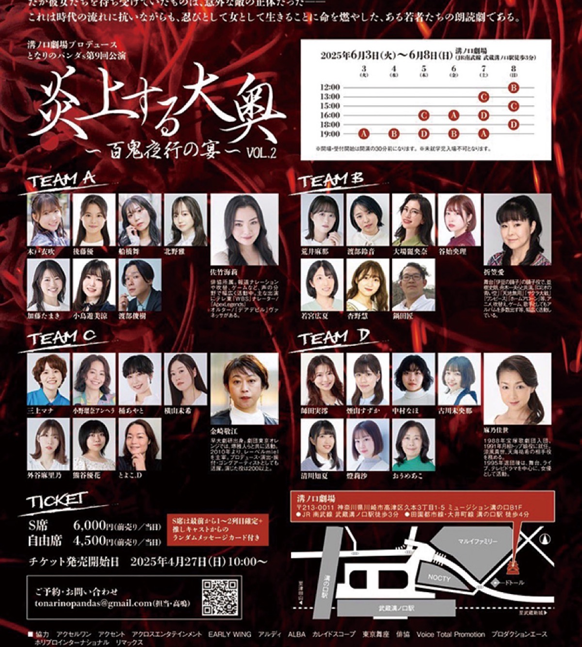 音楽コンサートや演劇など、各種エンターテイメントの情報発信基地として多くのご利用を頂いている当劇場。今回は、オーナー・支配人の重岡俊行をはじめスタッフが総力をあげてお届けする朗読劇「炎上する大奥〜百鬼夜行の宴〜 vol.2」について紹介します。