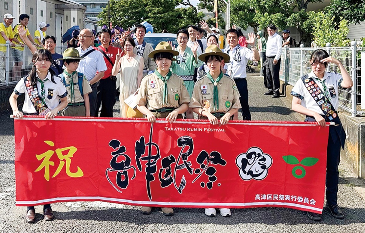 オープニングセレモニーの会場となる高津スポーツセンターでは「タカスポ祭り」が開催され、館があふれるくらいの来場者がいる中、パレード出発式を行いました。アトラクションでは、川崎市消防音楽隊、KADOKAWA DREAMS、高津高校書道部がパフォーマンスを披露し、出発式を盛り上げてくれました(迫力満点でした!ありがとうございました!)。