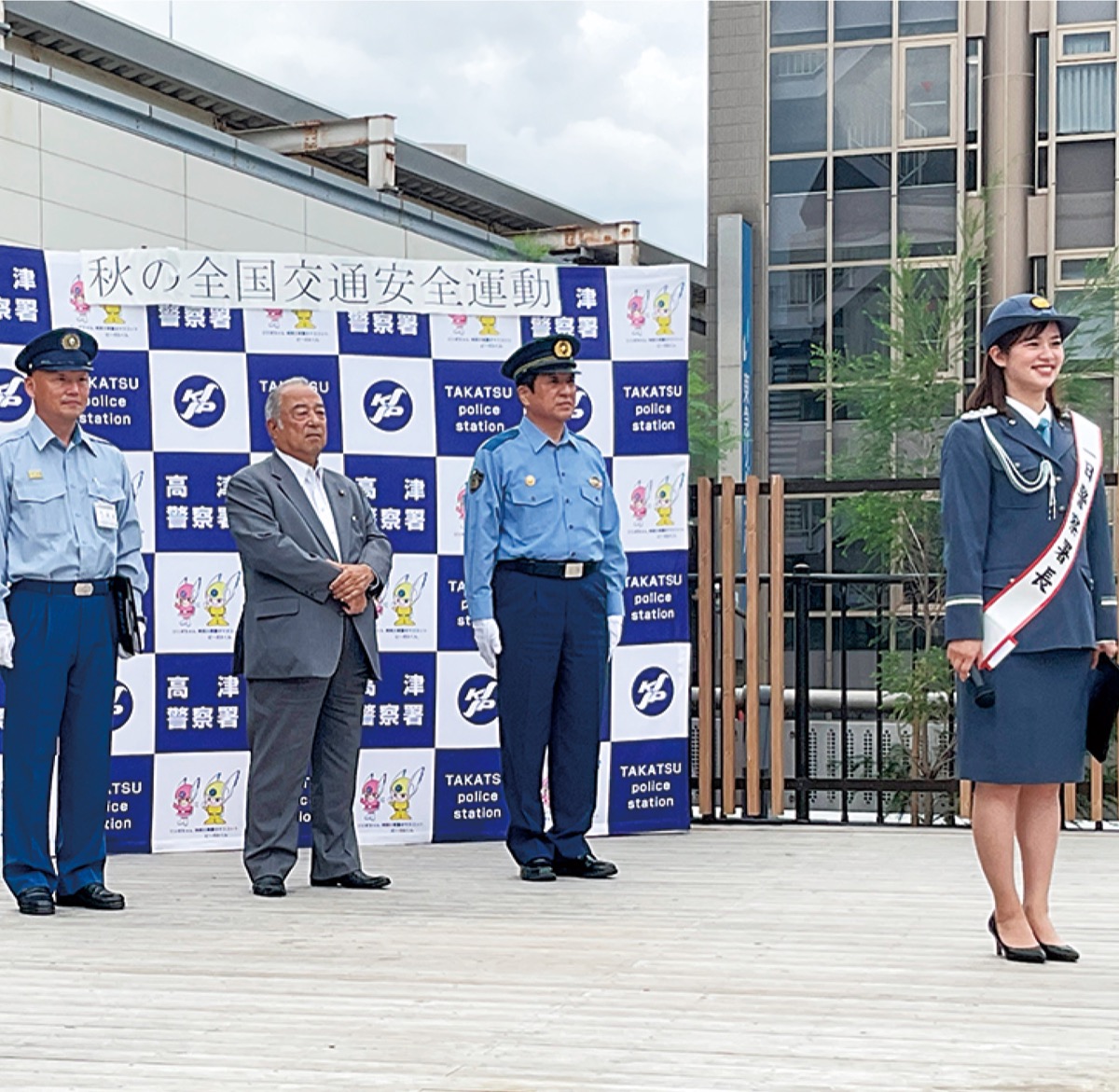 当日は、今中隆洋高津警察署長と田邊浩太高津消防署長が登壇。今中署長は自転車の事故が増加傾向にあることに言及し「運転する際はヘルメットを使って、思いやりをもって道路を利用して」と参加者に話した。