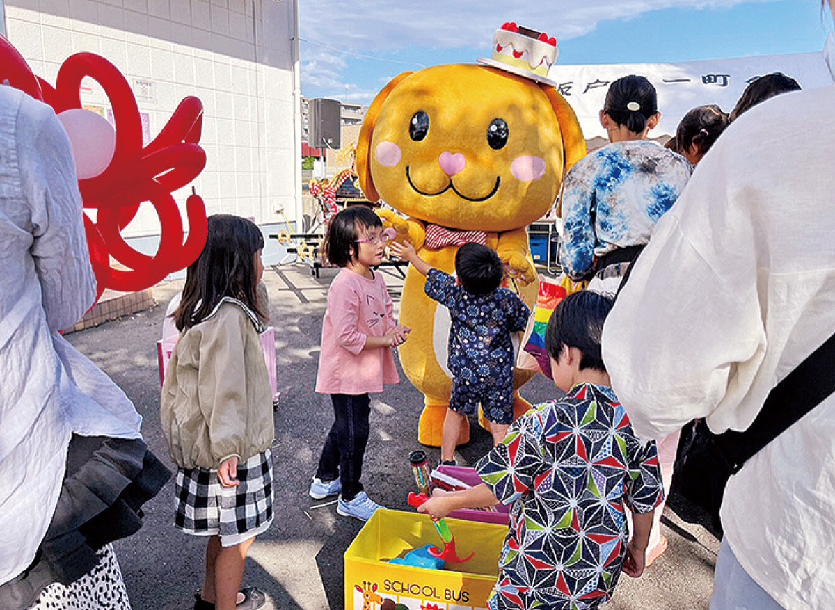 「少しでも多くの人に例大祭を楽しんでもらおう」という趣旨の下、行われるこの催し。射的や輪投げ、お菓子釣りなどの出店が並ぶ会場では、けん玉やシャボン玉のパフォーマンスや、バルーンアートのマジックショーなどが行われる。