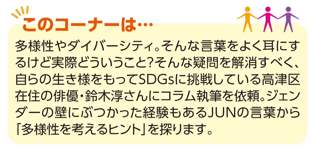 今回は「多様性は可能性」と題してお送りします。私の人生に影響を与えたと言っても過言ではないこのワード、実は我がホームタウンである川崎市が平成28(2016)年に発表したブランドメッセージ、つまり市の理念を表現した言葉の中にあったものなのです。市制100周年を迎える2024年、さらにその先の未来に向けての想いが込められていて、私には一目見た瞬間から強く惹かれるものがありました。