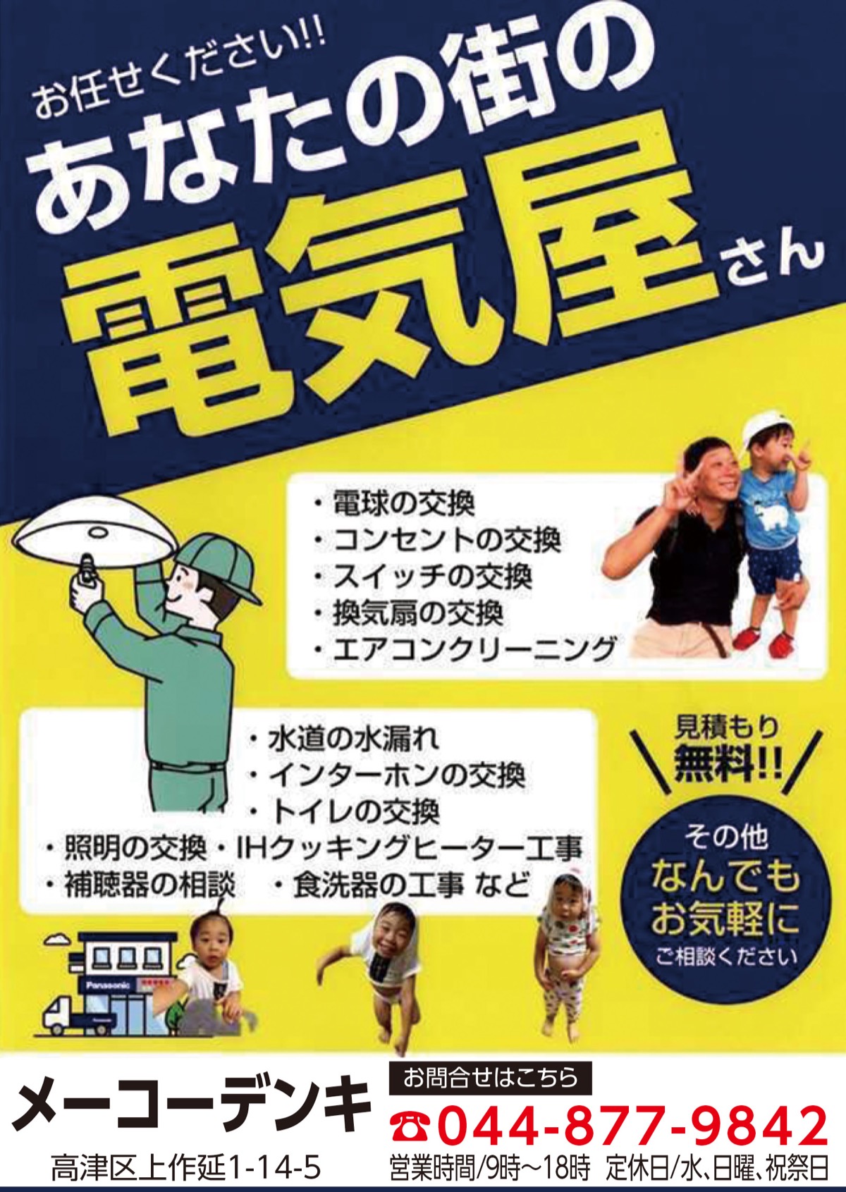 高津区内であれば、どこでも駆け付ける抜群のフットワークが好評を博す「メーコーデンキ」(高津区上作延1の14の5)の出張サービス。