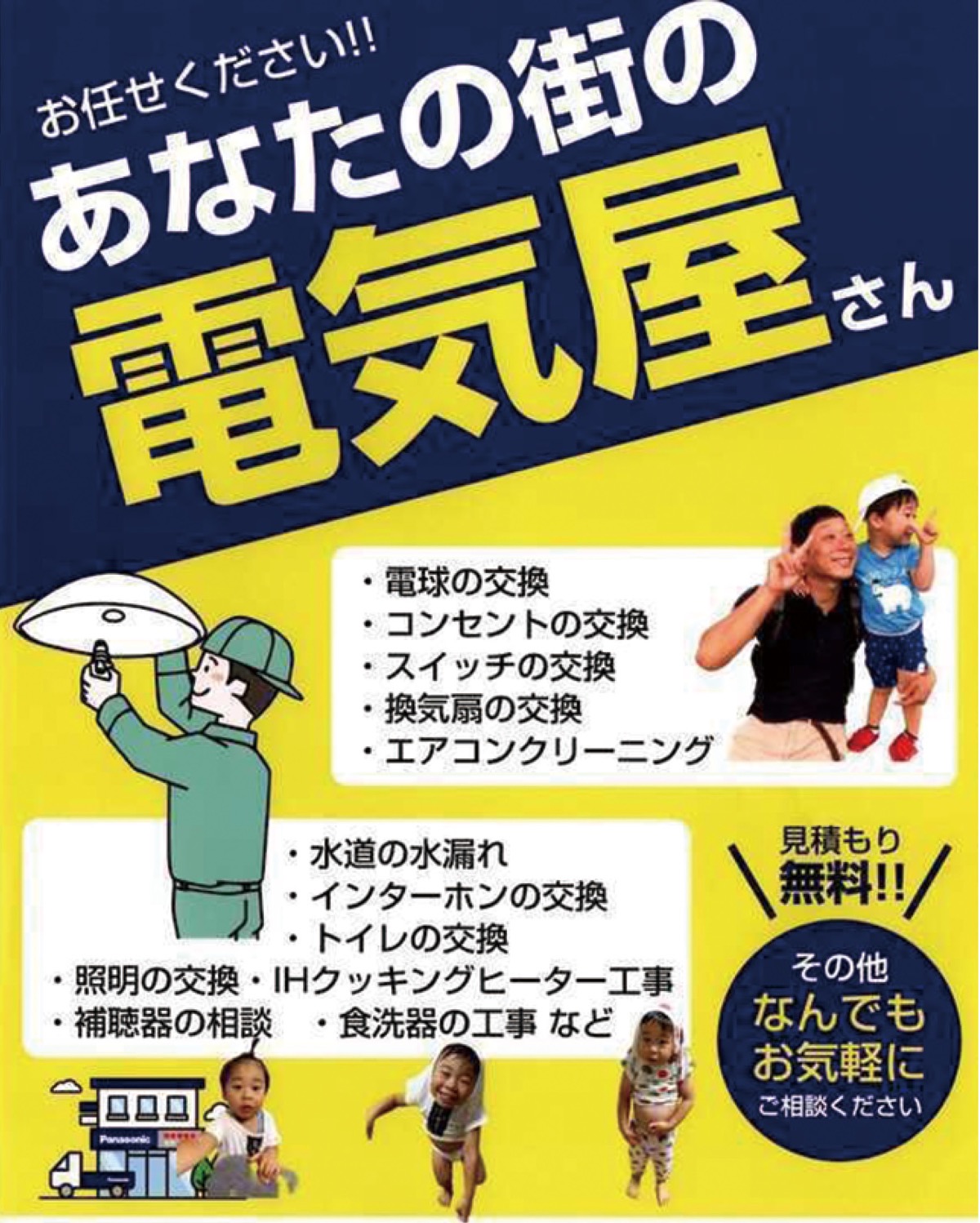 量販店やネットショップとは一線を画す「街のでんきやさん(パナソニックのお店)」として創業54年の歴史を誇る同店が手掛けるこの地域密着型サービスは、家電やリフォーム等、住まいに関する事を総合的にサポートしてくれるもの。