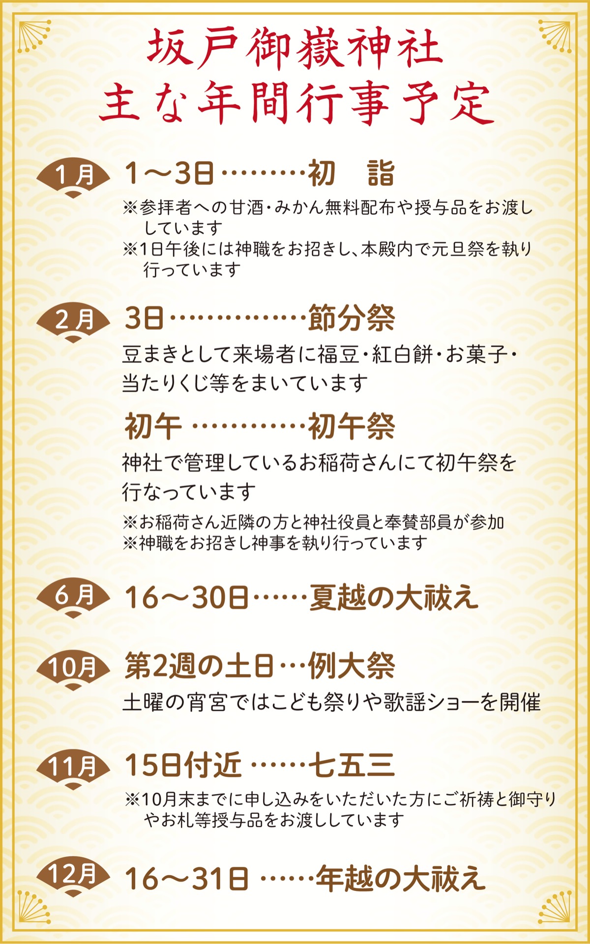 坂戸御嶽神社では、「少しでも多くの人に例大祭を楽しんでもらおう」という趣旨の下、秋の例大祭で子ども向けのイベントを開催するなど、特長的な取り組みを手掛けることでも知られている。責任役員の一人、前島幸雄さんは「それぞれの行事に、ぜひ沢山の人にお越し頂ければ」と話している。