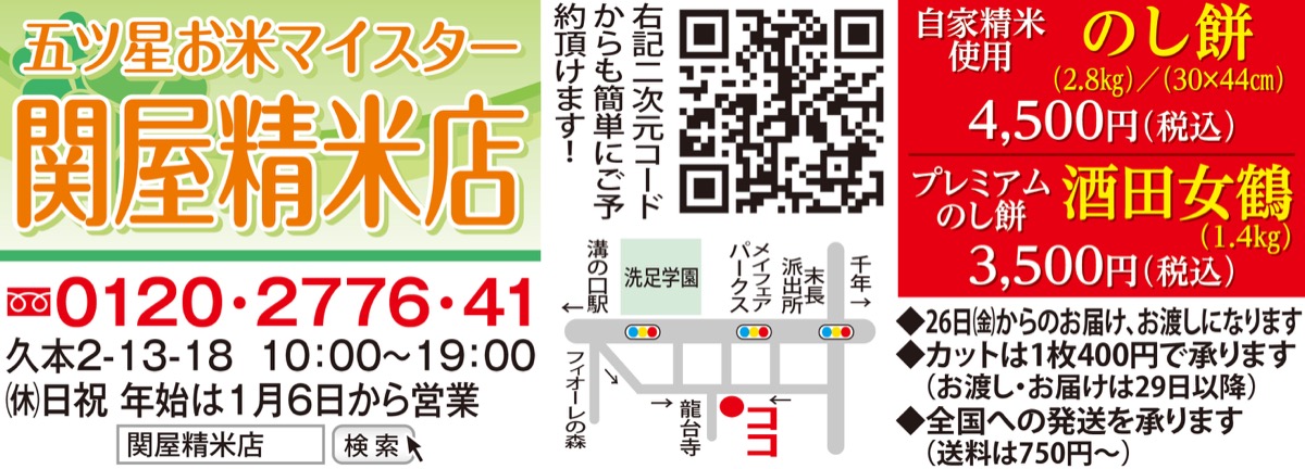 また、栽培が難しく幻のもち米となった品種「女鶴」を、品種改良した「酒田女鶴」(山形県酒田市)の伸し餅を数量限定販売する。こちらは特に早めのご予約を。