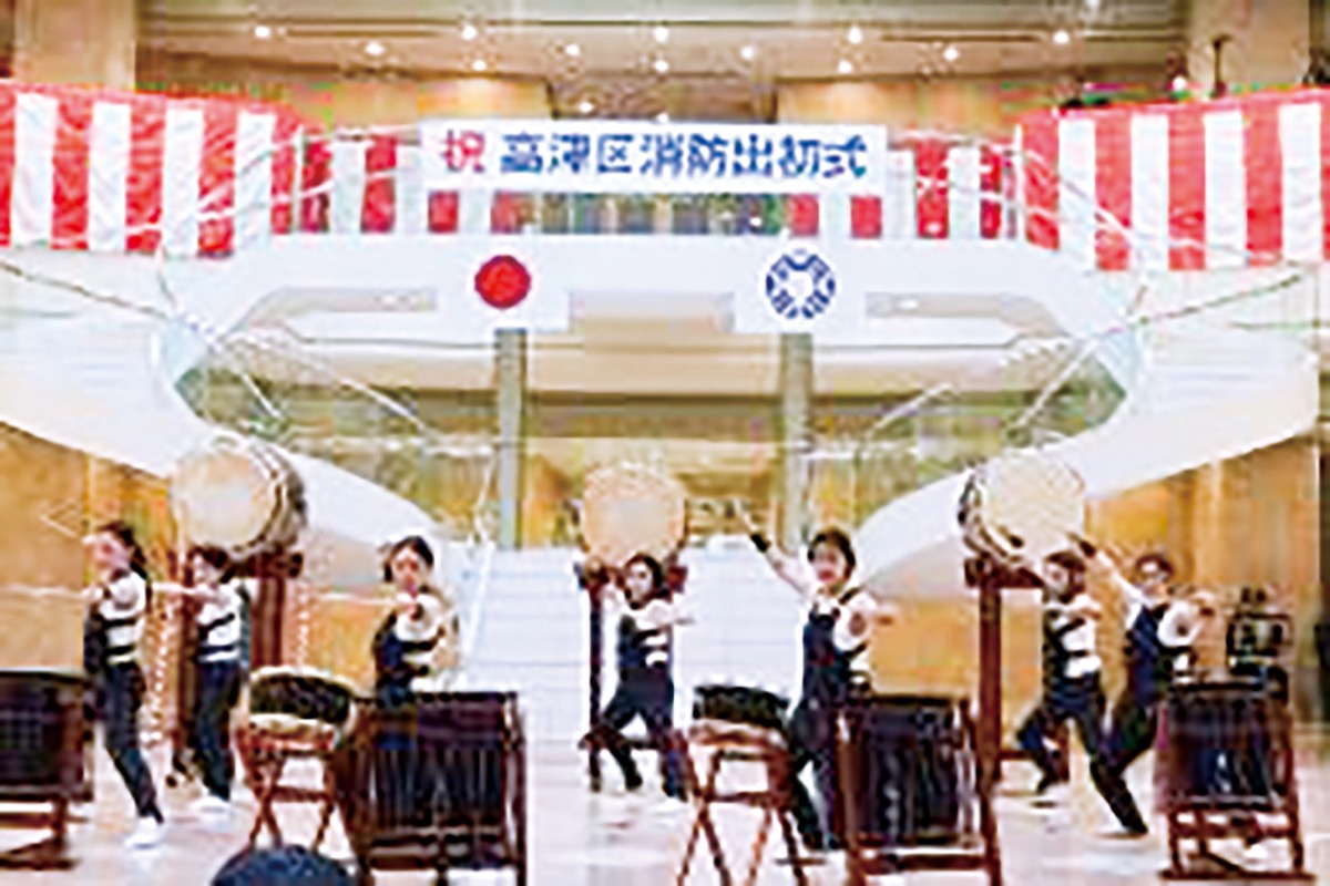 式典は、高津消防団員による威勢の良い「纏振り」で開幕。屋内会場では、消防功労者への表彰や徒歩行進が行われたほか、洗足学園音楽大学声楽コースの和知未涼さんによる国歌独唱が厳かに響き渡った。