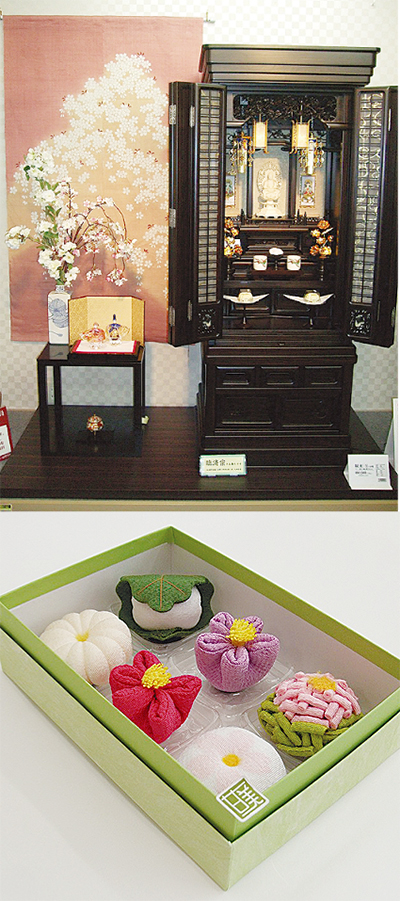 「仏壇だけでなく、その周囲までも総合的に提案できるのが当社の強みです」と荒川さん。仏壇をインテリアの一部と考え季節のしつらいとともにコーディネートしたり、故人の嗜好品や和菓子をローソクに見立てたシリーズはテレビでも紹介されたほど。経験豊富なスタッフとともに偲び方を考えてみてはいかが。