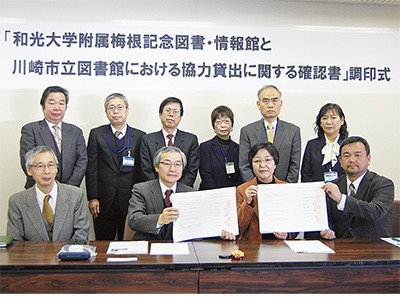 川崎市立図書館と和光大学附属梅根記念図書・情報館(町田市金井町)がこのほど、所蔵する図書を相互に貸出可能にする新協定を締結した。大学所蔵の専門書が市立図書館で借りられるようになった。