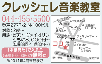 向ヶ丘遊園駅から徒歩3分の好立地に4月、ピアノとヴァイオリンを個人レッスンで学べる「クレッシェレ音楽教室」が誕生した。