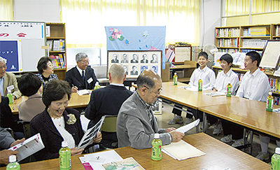 「私たちがここに通い始めた当時はね、バラック建ての校舎で、みかん箱を机代わりに勉強したんだよ」―。今年喜寿を迎える同窓生らは在校生に、当時のことを話し始めた。